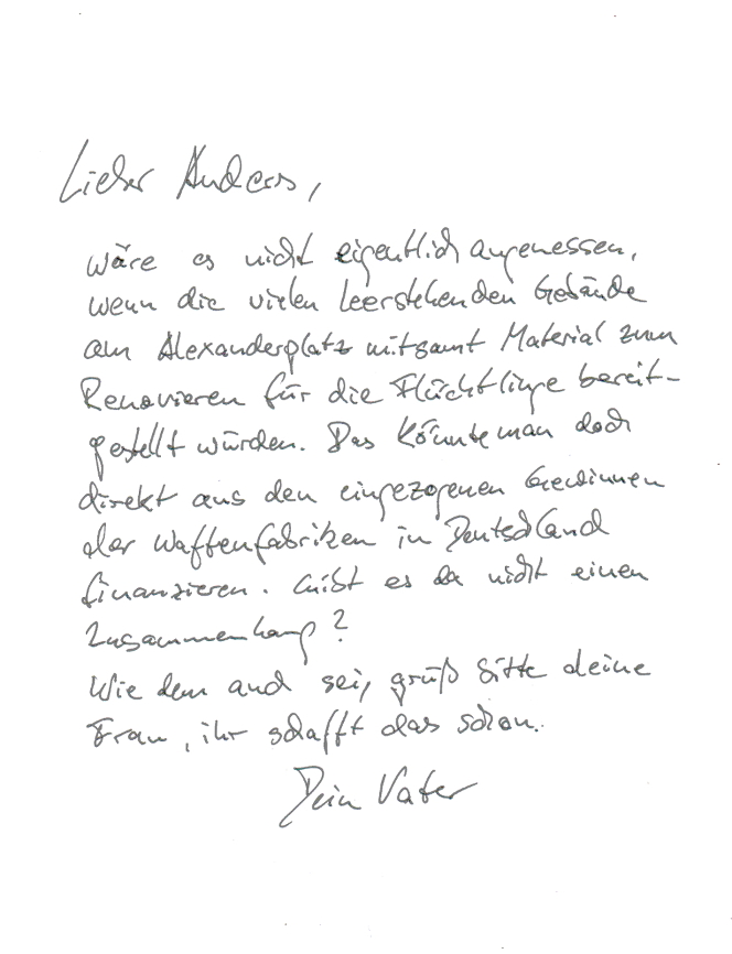 Er wedelt mit Papieren. Sie fallen. Emballasch.