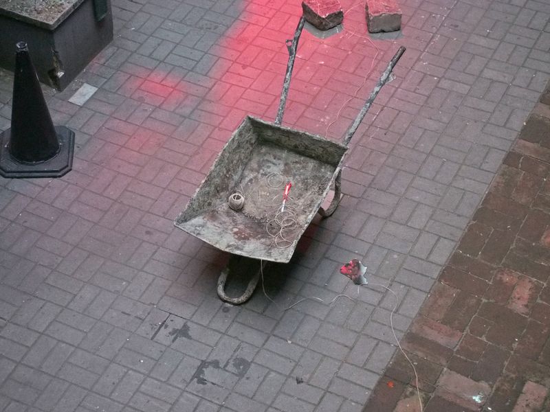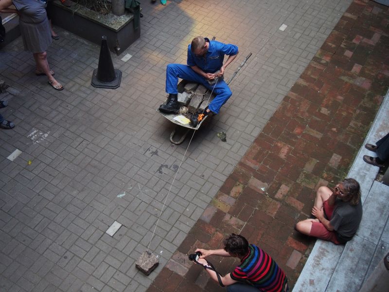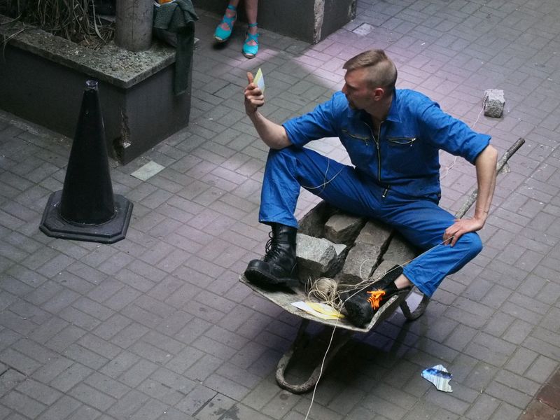 Bei sich führt er einen spiegel, den er, wenn er dort angekommen ist, auf den boden wirft, zwischen den schritten die verbindung prüft, sich im verhältnis zu dem, was er dort erkennen kann. Er betrachtet durch ihn auch die, die er wahrzunehmen glaubt.