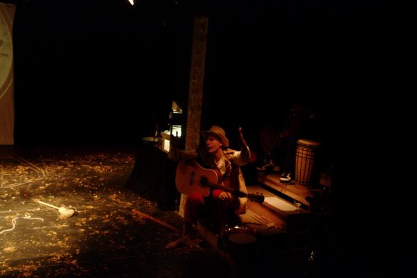 LUX a la negra zeigt LUX nach Aloplex Schalk mit Daniela Lungeanu als Lux, der kleine schlaue Fuchs, Raul Hinojosa als Puppenspieler, Anders Kamp als Erzähler Basmatie, Pato Apparato als Musiker El Chucho ACUDtheater im Dezember 2011 |